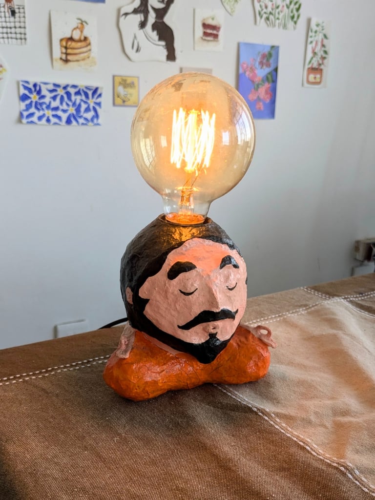 The Baba Nirvana sculpture captures serene wisdom and spiritual depth. In a meditative pose, with flowing beard and simple robes, it evokes peace and inner strength, symbolizing the Sadhu's devotion and connection to the divine. Crafted with upcycled newspapers, the piece radiates timeless tranquility.