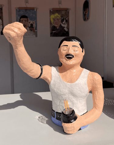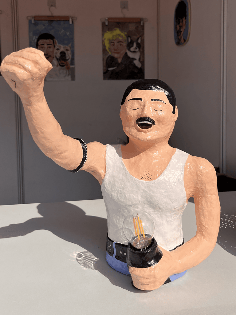 A tribute to the legend capturing Freddie’s fiery passion and energy. The sculpture is made completely from upcycled newspapers, a small act of giving back to nature. A symbolic mix of victory and vulnerability could be evoked through the pose, emphasizing Freddie's resilience, his journey from humble beginnings to global stardom, and his ongoing legacy.